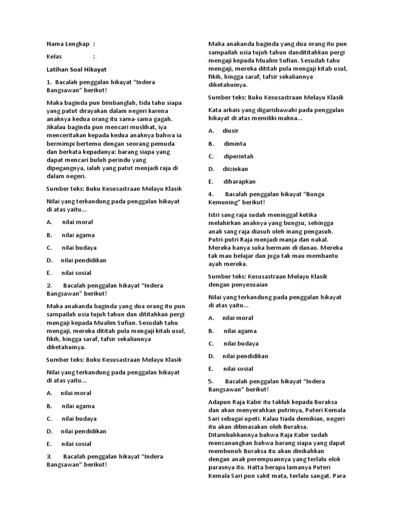 Contoh Soal Hikayat / Soal Hikayat Kelas 10 Pilihan Ganda Nasi : Perbedaannya novel merupakan karya sastra yang berkembang pada zaman sekarang sedangkan hikayat berkembang pada zaman melayu klasik.. contoh soalan peperiksaan bahasa malaysia tahun 5. Petunjuk umum tulis namamu di sudut kanan atas. Berikut ini disajikan contoh soal pada level 2 mata pelajaran bahasa dan sastra indonesia. contoh soal teks cerpen dan kunci jawabannya ada sekitar 80 butir soal pgpilihan gandapilgan bahasa indonesia tentang teks cerpen kelas 12 dan jawabannya yang bisa adik adik jadikan referensi dalam menghadapi ujian dari guru. Semuanya berkaitan dan memiliki inti yang sama yaitu pada pelaporan keuangan yang baik.